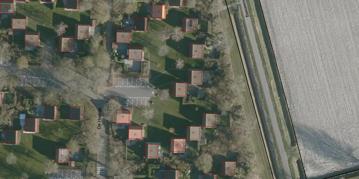 Het perceel waarop De Haerde 70 staat heeft een oppervlakte van 6,1 ha. Dit is een zeer groot perceel. De perceeloppervlakte wordt geregistreerd door het Kadaster. Gedetailleerde informatie over de maten van dit perceel kunt u vinden in het rapport Kadastrale kaart met maatvoering van De Haerde 70.