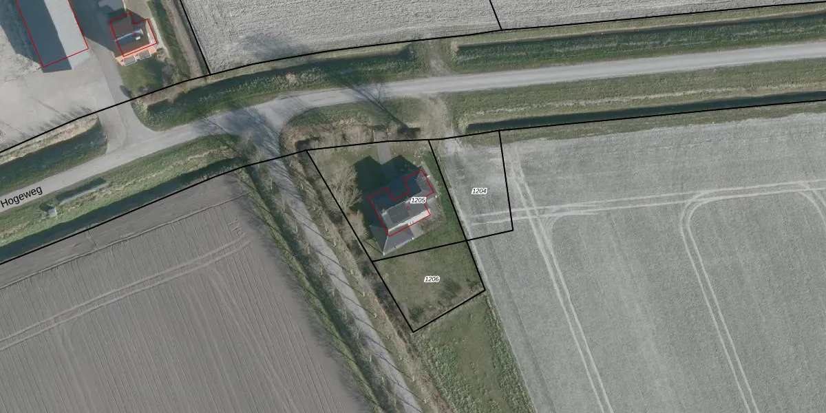 Hogeweg 6 is gelegen op kadastraal perceel MDS01H1205. Deze kadastrale aanduiding is uniek en wordt gebruikt door het Kadaster om eigendomsrechten en andere zakelijke rechten vast te leggen. Het perceel maakt onderdeel uit van de kadastrale gemeente Middenschouwen.