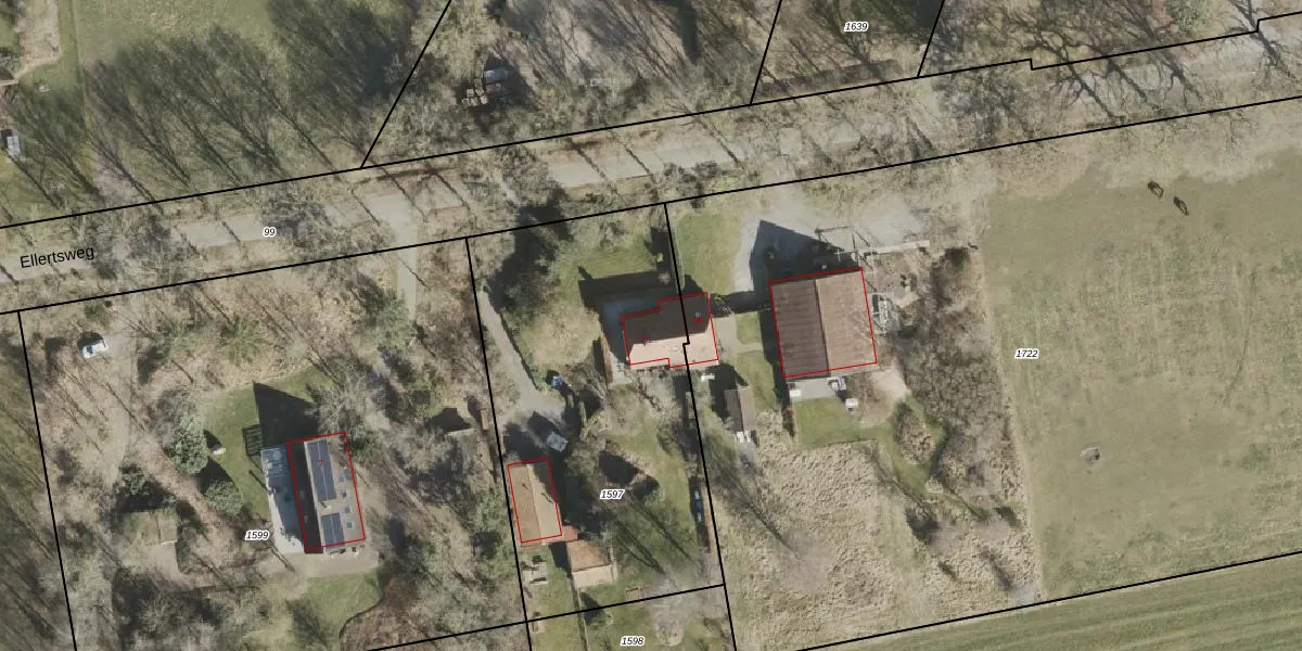 Het perceel waarop Ellertsweg 5 staat heeft een oppervlakte van 1822 m². Dit is een zeer groot perceel. De perceeloppervlakte wordt geregistreerd door het Kadaster. Gedetailleerde informatie over de maten van dit perceel kunt u vinden in het rapport Kadastrale kaart met maatvoering van Ellertsweg 5.