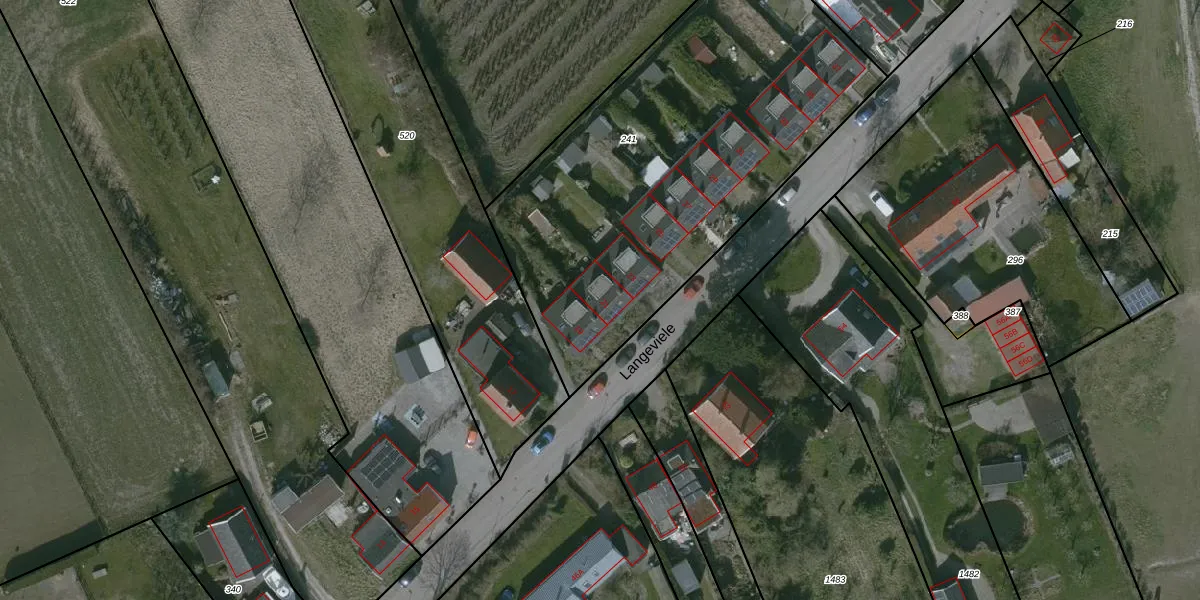 Het perceel waarop Langeviele 21 staat heeft een oppervlakte van 2200 m². Dit is een zeer groot perceel. De perceeloppervlakte wordt geregistreerd door het Kadaster. Gedetailleerde informatie over de maten van dit perceel kunt u vinden in het rapport Kadastrale kaart met maatvoering van Langeviele 21.
