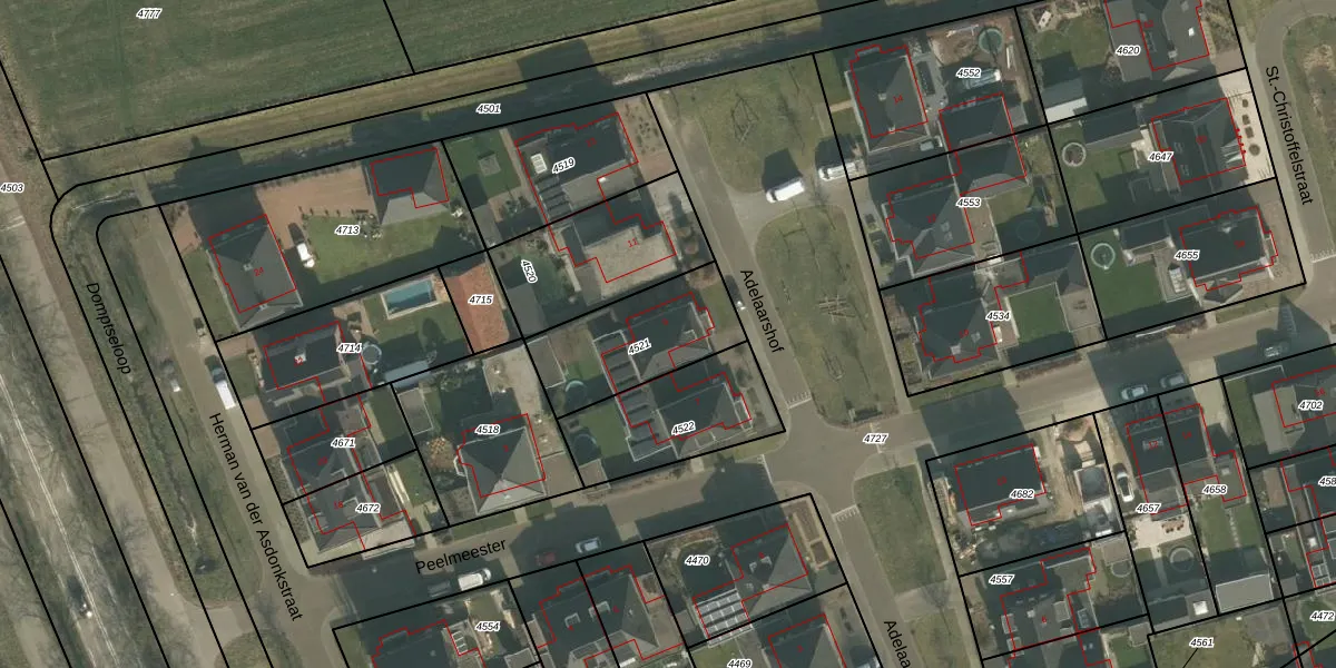 Adelaarshof 9 is gelegen op kadastraal perceel GMT00C4521. Deze kadastrale aanduiding is uniek en wordt gebruikt door het Kadaster om eigendomsrechten en andere zakelijke rechten vast te leggen. Het perceel maakt onderdeel uit van de kadastrale gemeente Gemert.