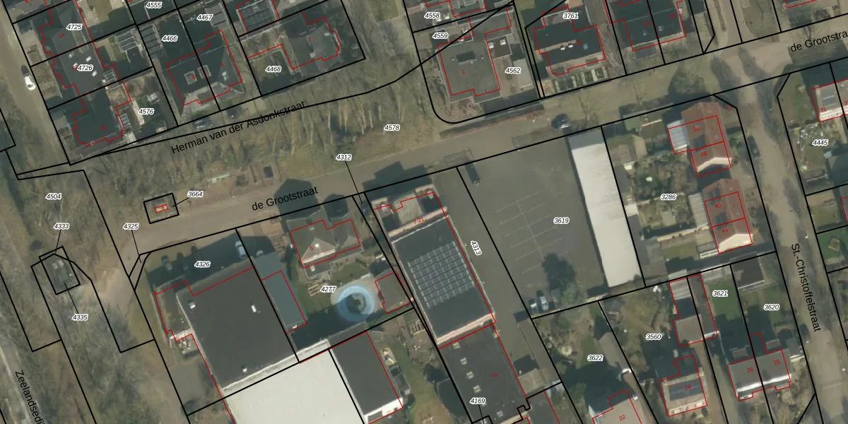 de Grootstraat 21 is gelegen op kadastraal perceel GMT00C4313. Deze kadastrale aanduiding is uniek en wordt gebruikt door het Kadaster om eigendomsrechten en andere zakelijke rechten vast te leggen. Het perceel maakt onderdeel uit van de kadastrale gemeente Gemert.