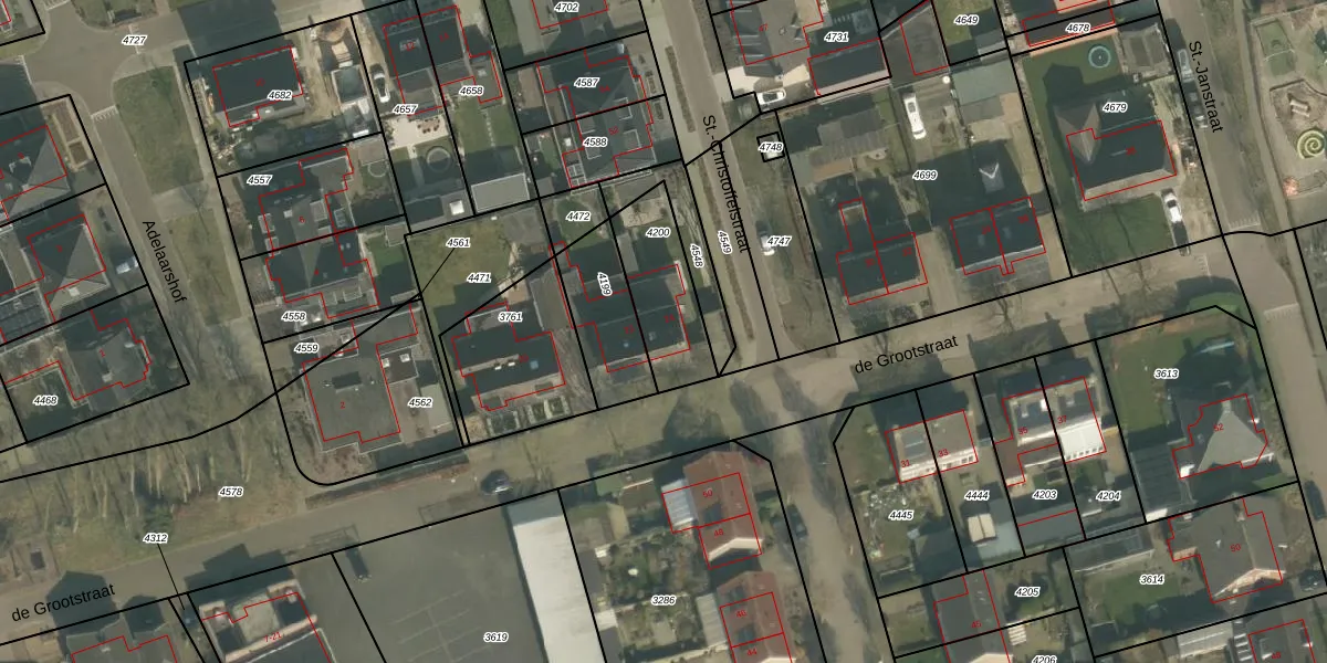de Grootstraat 24 is gelegen op kadastraal perceel GMT00C4200. Deze kadastrale aanduiding is uniek en wordt gebruikt door het Kadaster om eigendomsrechten en andere zakelijke rechten vast te leggen. Het perceel maakt onderdeel uit van de kadastrale gemeente Gemert.