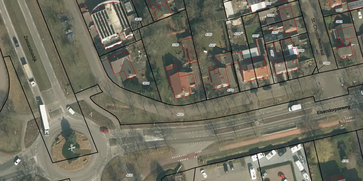 Elsendorpseweg 46 is gelegen op kadastraal perceel GMT00C3289. Deze kadastrale aanduiding is uniek en wordt gebruikt door het Kadaster om eigendomsrechten en andere zakelijke rechten vast te leggen. Het perceel maakt onderdeel uit van de kadastrale gemeente Gemert.