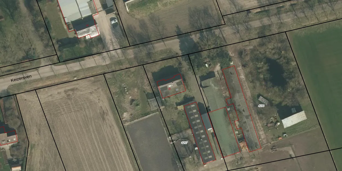 Het perceel waarop Keizersven 35 staat heeft een oppervlakte van 1835 m². Dit is een zeer groot perceel. De perceeloppervlakte wordt geregistreerd door het Kadaster. Gedetailleerde informatie over de maten van dit perceel kunt u vinden in het rapport Kadastrale kaart met maatvoering van Keizersven 35.