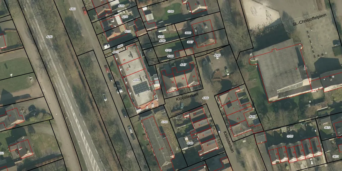 Kloostertuin 34 is gelegen op kadastraal perceel GMT00C4047. Deze kadastrale aanduiding is uniek en wordt gebruikt door het Kadaster om eigendomsrechten en andere zakelijke rechten vast te leggen. Het perceel maakt onderdeel uit van de kadastrale gemeente Gemert.