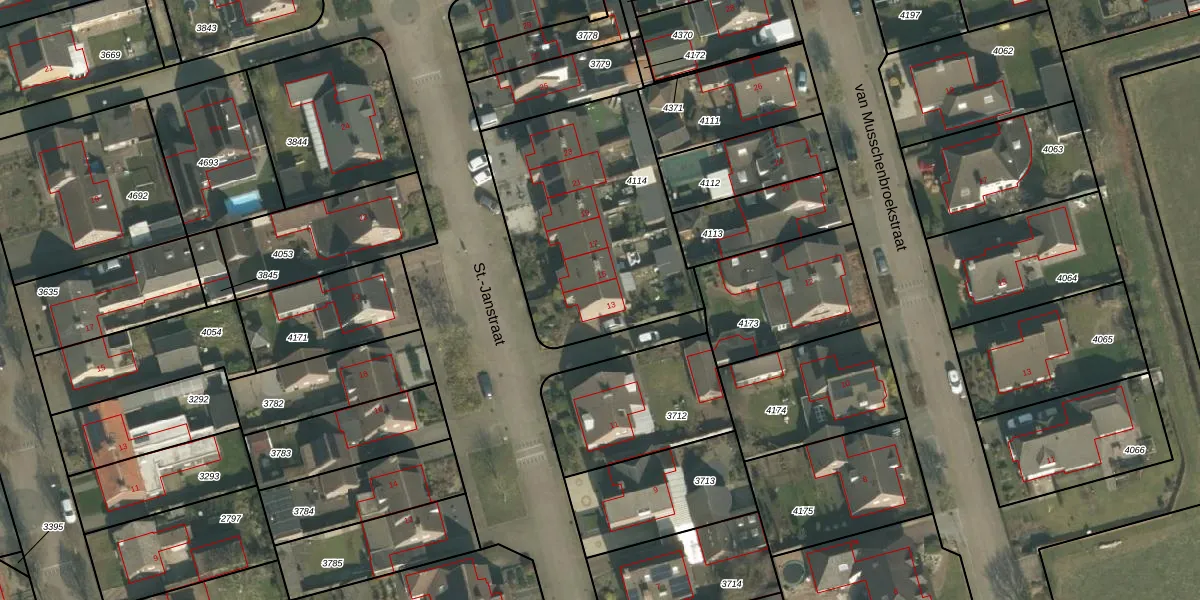 Het perceel waarop St.-Janstraat 13 staat heeft een oppervlakte van 1043 m². Dit is een zeer groot perceel. De perceeloppervlakte wordt geregistreerd door het Kadaster. Gedetailleerde informatie over de maten van dit perceel kunt u vinden in het rapport Kadastrale kaart met maatvoering van St.-Janstraat 13.