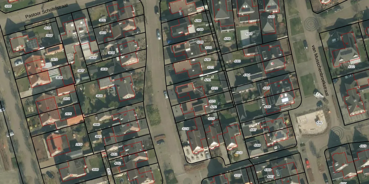 Gebruik de zoekbalk of klik op een perceel voor informatie over de adressen binnen dit perceel.