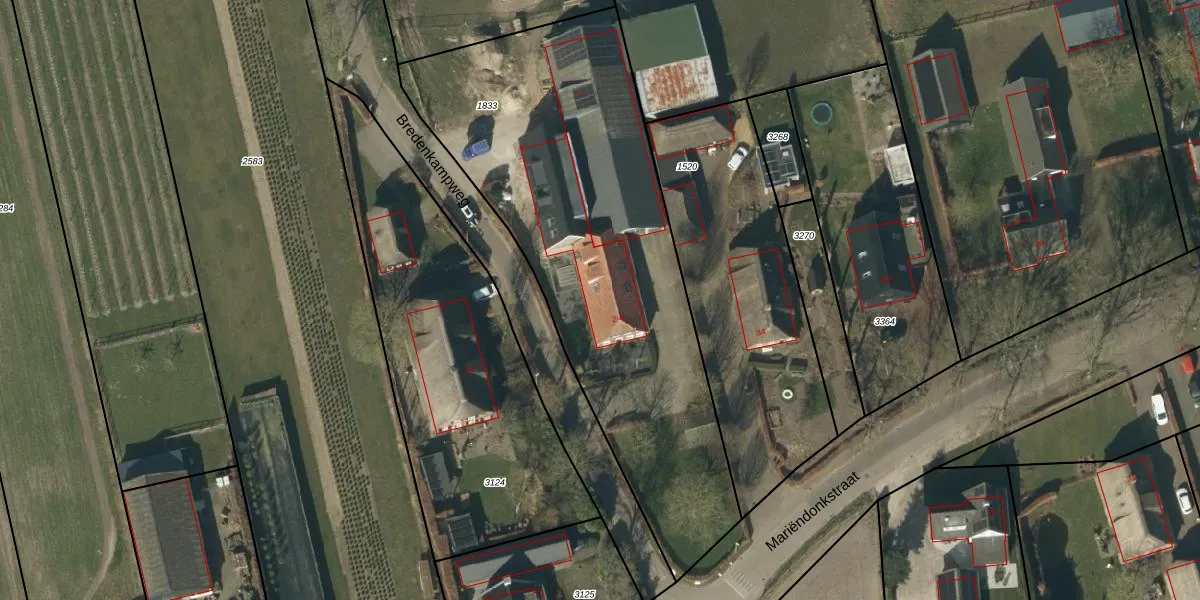 Bredenkampweg 2 is gelegen op kadastraal perceel DNN00K1833. Deze kadastrale aanduiding is uniek en wordt gebruikt door het Kadaster om eigendomsrechten en andere zakelijke rechten vast te leggen. Het perceel maakt onderdeel uit van de kadastrale gemeente Drunen.