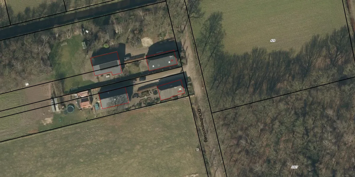 D'Oultremontweg 24-A is gelegen op kadastraal perceel DNN00K1221. Deze kadastrale aanduiding is uniek en wordt gebruikt door het Kadaster om eigendomsrechten en andere zakelijke rechten vast te leggen. Het perceel maakt onderdeel uit van de kadastrale gemeente Drunen.