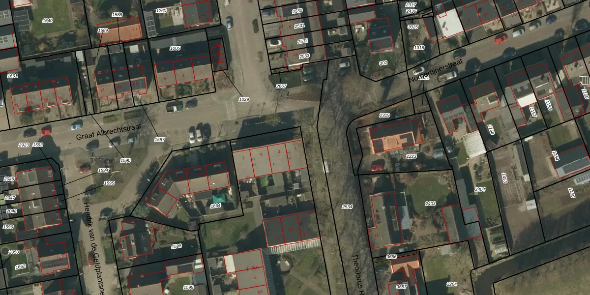 Het perceel waarop Graaf Albrechtstraat 1 staat heeft een oppervlakte van 3506 m². Dit is een zeer groot perceel. De perceeloppervlakte wordt geregistreerd door het Kadaster. Gedetailleerde informatie over de maten van dit perceel kunt u vinden in het rapport Kadastrale kaart met maatvoering van Graaf Albrechtstraat 1.