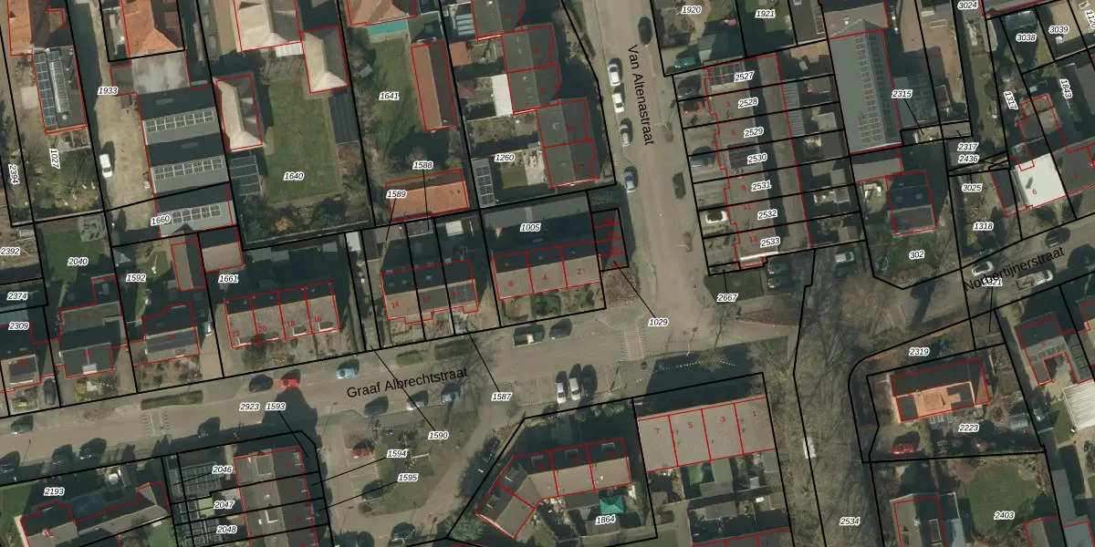 Het perceel waarop Graaf Albrechtstraat 4 staat heeft een oppervlakte van 447 m². Dit is een groot perceel. De perceeloppervlakte wordt geregistreerd door het Kadaster. Gedetailleerde informatie over de maten van dit perceel kunt u vinden in het rapport Kadastrale kaart met maatvoering van Graaf Albrechtstraat 4.