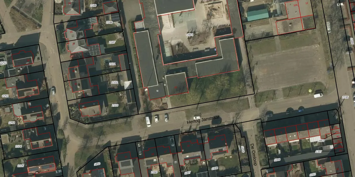 Hertog Janstraat 16 is gelegen op kadastraal perceel DNN00K1601. Deze kadastrale aanduiding is uniek en wordt gebruikt door het Kadaster om eigendomsrechten en andere zakelijke rechten vast te leggen. Het perceel maakt onderdeel uit van de kadastrale gemeente Drunen.