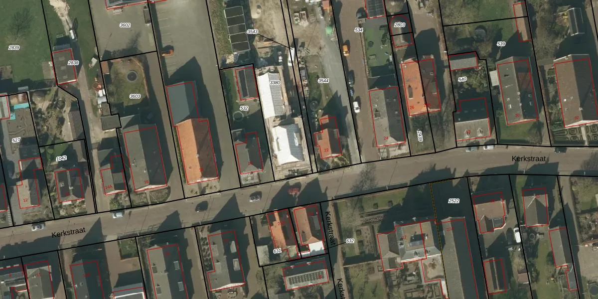Kerkstraat 20-A is gelegen op kadastraal perceel DNN00K3380. Deze kadastrale aanduiding is uniek en wordt gebruikt door het Kadaster om eigendomsrechten en andere zakelijke rechten vast te leggen. Het perceel maakt onderdeel uit van de kadastrale gemeente Drunen.