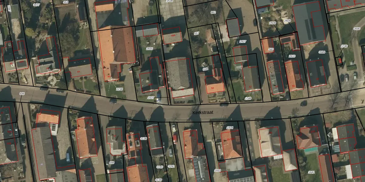 Het perceel waarop Kerkstraat 48 staat heeft een oppervlakte van 1801 m². Dit is een zeer groot perceel. De perceeloppervlakte wordt geregistreerd door het Kadaster. Gedetailleerde informatie over de maten van dit perceel kunt u vinden in het rapport Kadastrale kaart met maatvoering van Kerkstraat 48.