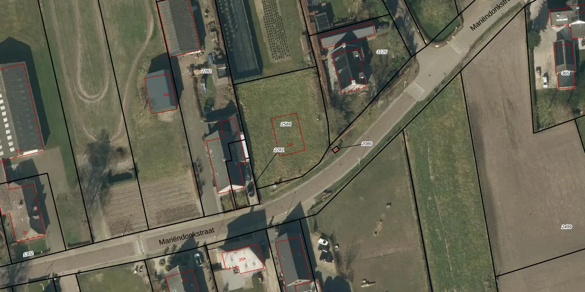 Het perceel waarop Mariëndonkstraat 24-A staat heeft een oppervlakte van 992 m². Dit is een groot perceel. De perceeloppervlakte wordt geregistreerd door het Kadaster. Gedetailleerde informatie over de maten van dit perceel kunt u vinden in het rapport Kadastrale kaart met maatvoering van Mariëndonkstraat 24-A.