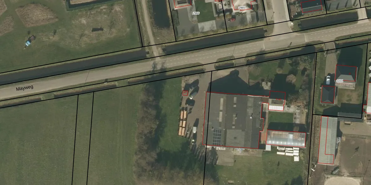 Het perceel waarop Mayweg 4-T staat heeft een oppervlakte van 1,1 ha. Dit is een zeer groot perceel. De perceeloppervlakte wordt geregistreerd door het Kadaster. Gedetailleerde informatie over de maten van dit perceel kunt u vinden in het rapport Kadastrale kaart met maatvoering van Mayweg 4-T.