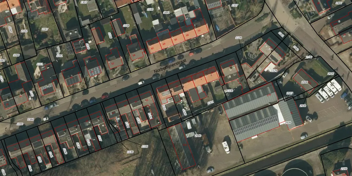 Het perceel waarop Norbertijnerstraat 61 staat heeft een oppervlakte van 188 m². Dit is een middelgroot perceel. De perceeloppervlakte wordt geregistreerd door het Kadaster. Gedetailleerde informatie over de maten van dit perceel kunt u vinden in het rapport Kadastrale kaart met maatvoering van Norbertijnerstraat 61.