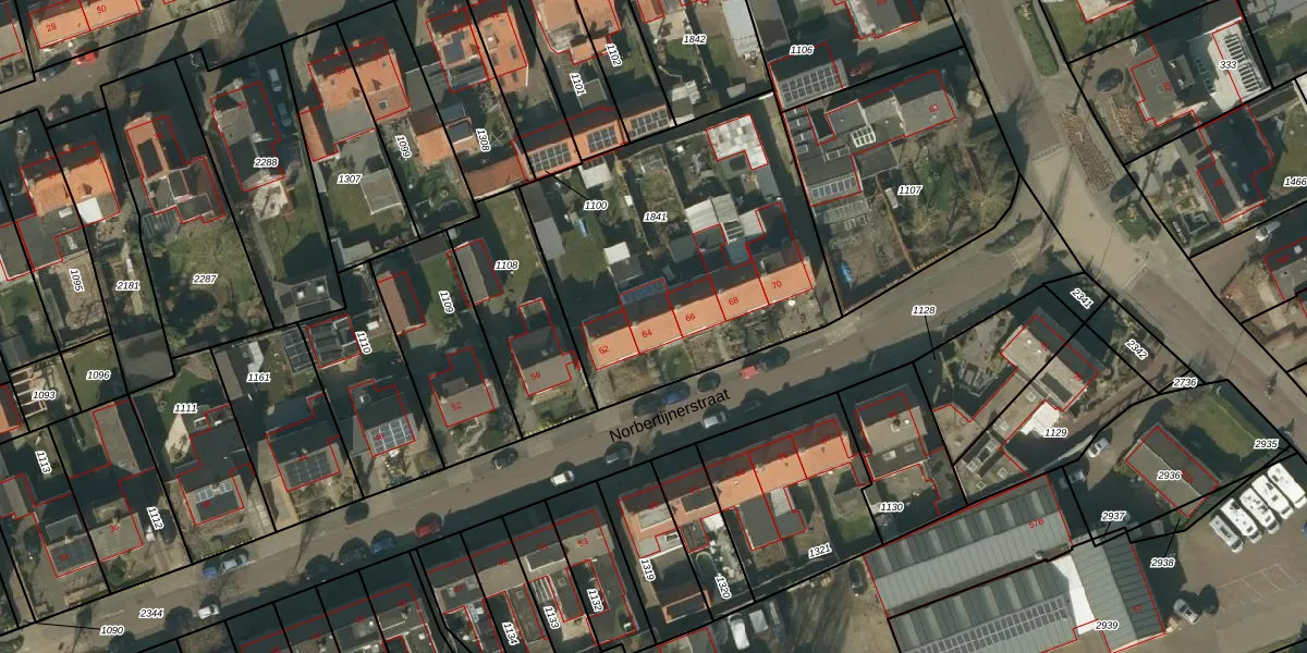 Het perceel waarop Norbertijnerstraat 64 staat heeft een oppervlakte van 1470 m². Dit is een zeer groot perceel. De perceeloppervlakte wordt geregistreerd door het Kadaster. Gedetailleerde informatie over de maten van dit perceel kunt u vinden in het rapport Kadastrale kaart met maatvoering van Norbertijnerstraat 64.