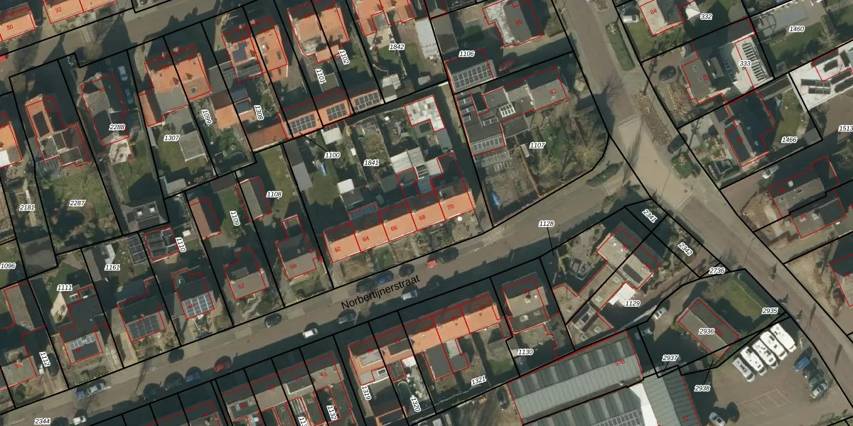Het perceel waarop Norbertijnerstraat 68 staat heeft een oppervlakte van 1470 m². Dit is een zeer groot perceel. De perceeloppervlakte wordt geregistreerd door het Kadaster. Gedetailleerde informatie over de maten van dit perceel kunt u vinden in het rapport Kadastrale kaart met maatvoering van Norbertijnerstraat 68.