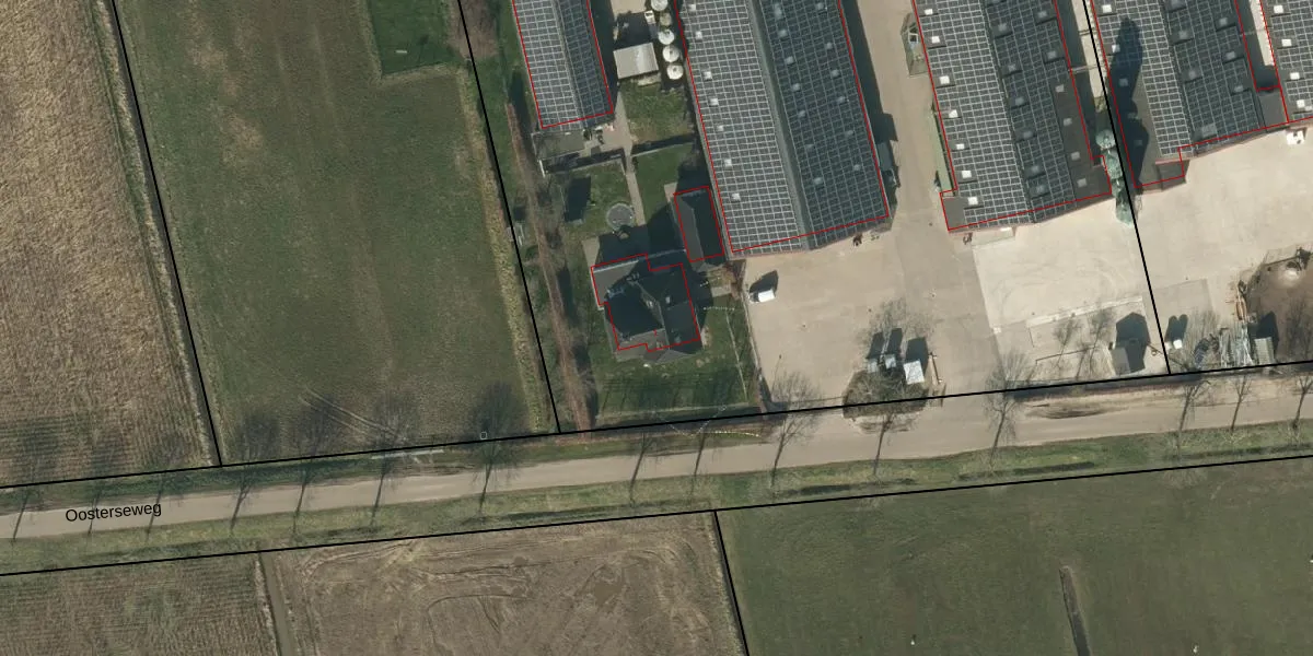 Het perceel waarop Oosterseweg 1 staat heeft een oppervlakte van 3,1 ha. Dit is een zeer groot perceel. De perceeloppervlakte wordt geregistreerd door het Kadaster. Gedetailleerde informatie over de maten van dit perceel kunt u vinden in het rapport Kadastrale kaart met maatvoering van Oosterseweg 1.