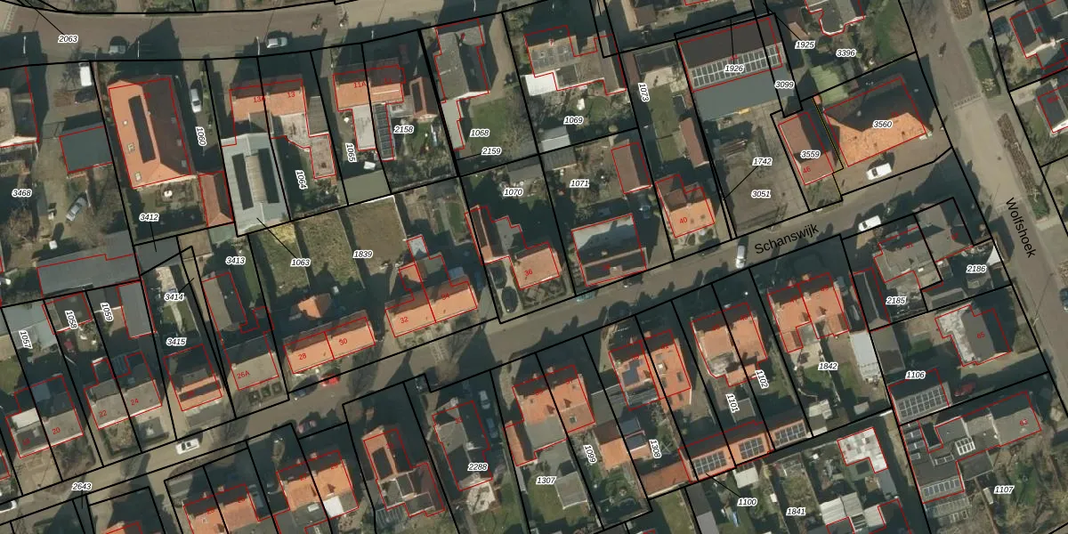 Het perceel waarop Schanswijk 36 staat heeft een oppervlakte van 428 m². Dit is een groot perceel. De perceeloppervlakte wordt geregistreerd door het Kadaster. Gedetailleerde informatie over de maten van dit perceel kunt u vinden in het rapport Kadastrale kaart met maatvoering van Schanswijk 36.