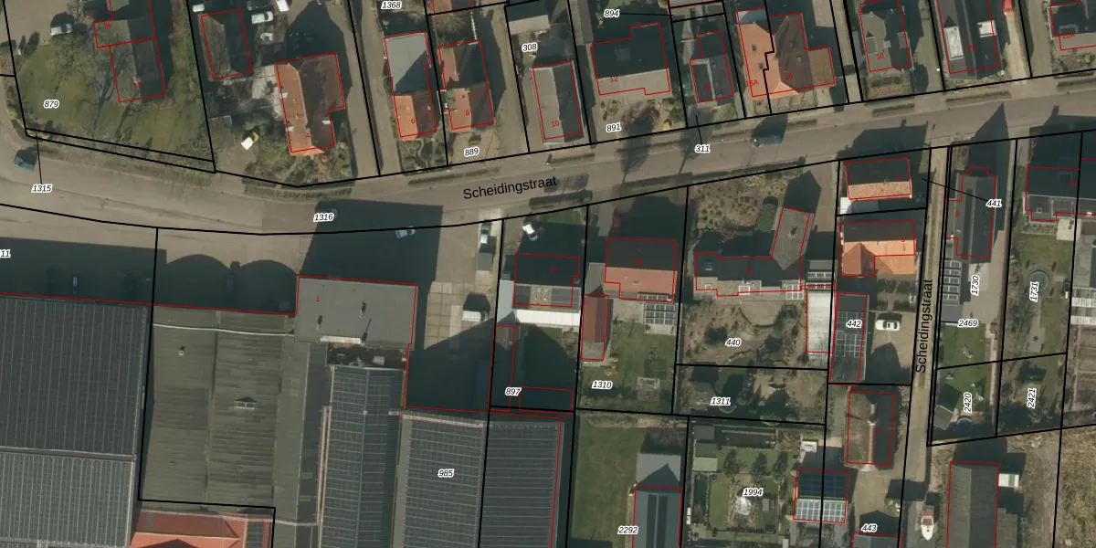 Scheidingstraat 1-A is gelegen op kadastraal perceel DNN00K897. Deze kadastrale aanduiding is uniek en wordt gebruikt door het Kadaster om eigendomsrechten en andere zakelijke rechten vast te leggen. Het perceel maakt onderdeel uit van de kadastrale gemeente Drunen.