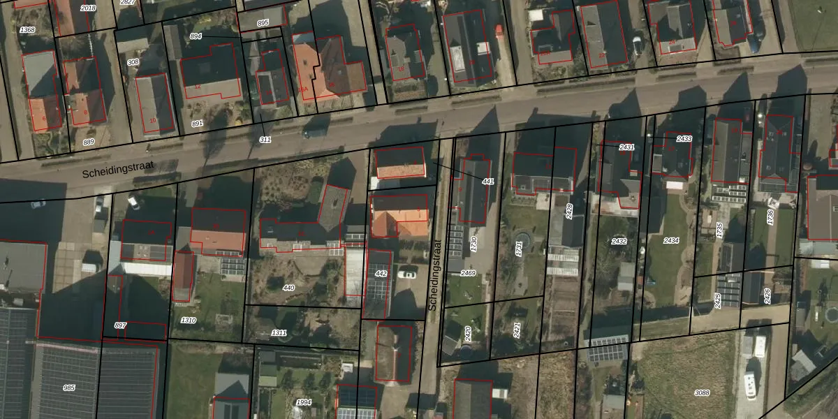 Het perceel waarop Scheidingstraat 5 staat heeft een oppervlakte van 488 m². Dit is een groot perceel. De perceeloppervlakte wordt geregistreerd door het Kadaster. Gedetailleerde informatie over de maten van dit perceel kunt u vinden in het rapport Kadastrale kaart met maatvoering van Scheidingstraat 5.