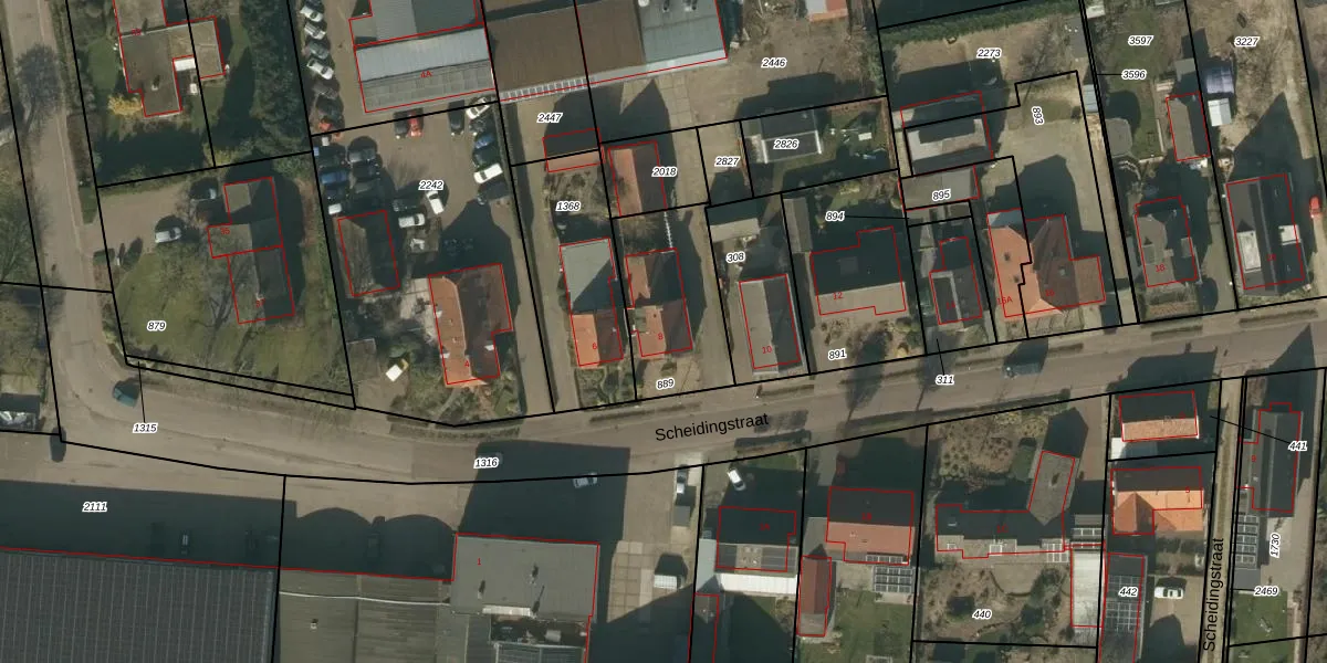 Het perceel waarop Scheidingstraat 8 staat heeft een oppervlakte van 410 m². Dit is een groot perceel. De perceeloppervlakte wordt geregistreerd door het Kadaster. Gedetailleerde informatie over de maten van dit perceel kunt u vinden in het rapport Kadastrale kaart met maatvoering van Scheidingstraat 8.