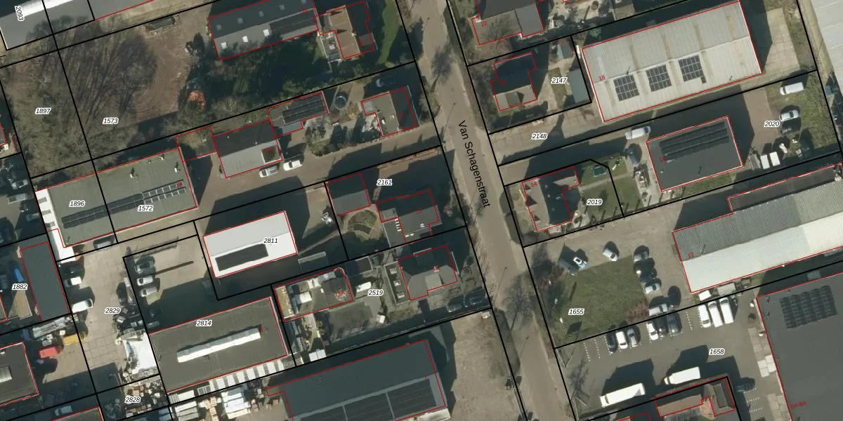 Gebruik de zoekbalk of klik op een perceel voor informatie over de adressen binnen dit perceel.