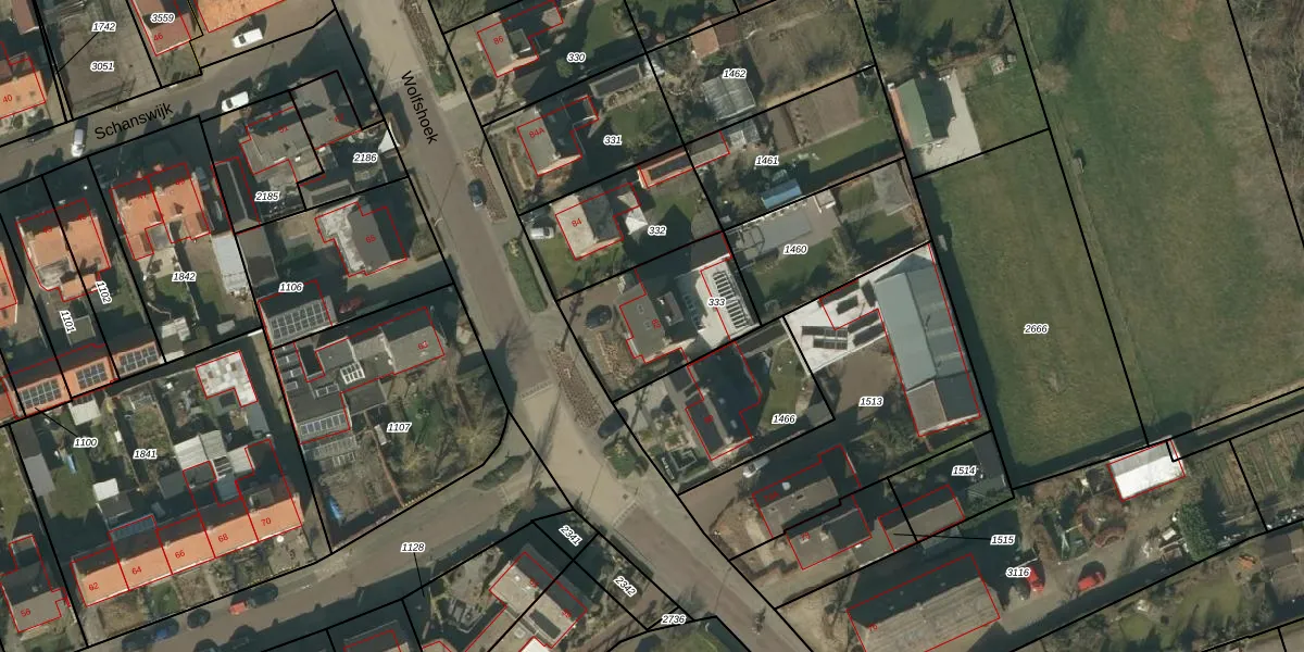 Het perceel waarop Wolfshoek 82 staat heeft een oppervlakte van 430 m². Dit is een groot perceel. De perceeloppervlakte wordt geregistreerd door het Kadaster. Gedetailleerde informatie over de maten van dit perceel kunt u vinden in het rapport Kadastrale kaart met maatvoering van Wolfshoek 82.