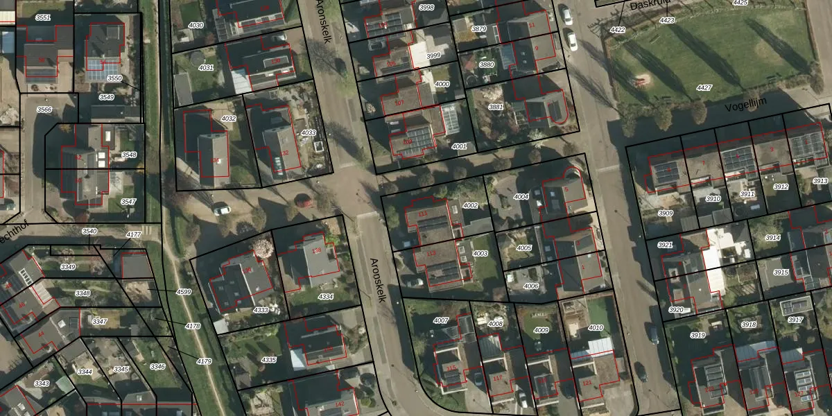 Aronskelk 111 is gelegen op kadastraal perceel ELO00A4002. Deze kadastrale aanduiding is uniek en wordt gebruikt door het Kadaster om eigendomsrechten en andere zakelijke rechten vast te leggen. Het perceel maakt onderdeel uit van de kadastrale gemeente Elsloo.