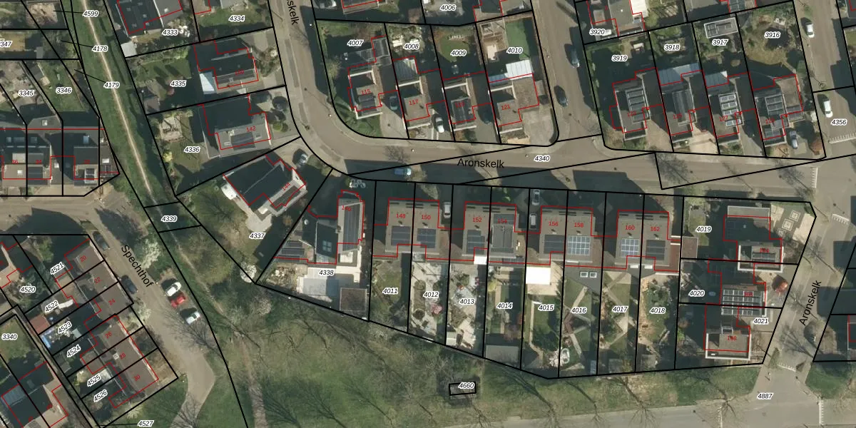 Aronskelk 150 is gelegen op kadastraal perceel ELO00A4012. Deze kadastrale aanduiding is uniek en wordt gebruikt door het Kadaster om eigendomsrechten en andere zakelijke rechten vast te leggen. Het perceel maakt onderdeel uit van de kadastrale gemeente Elsloo.
