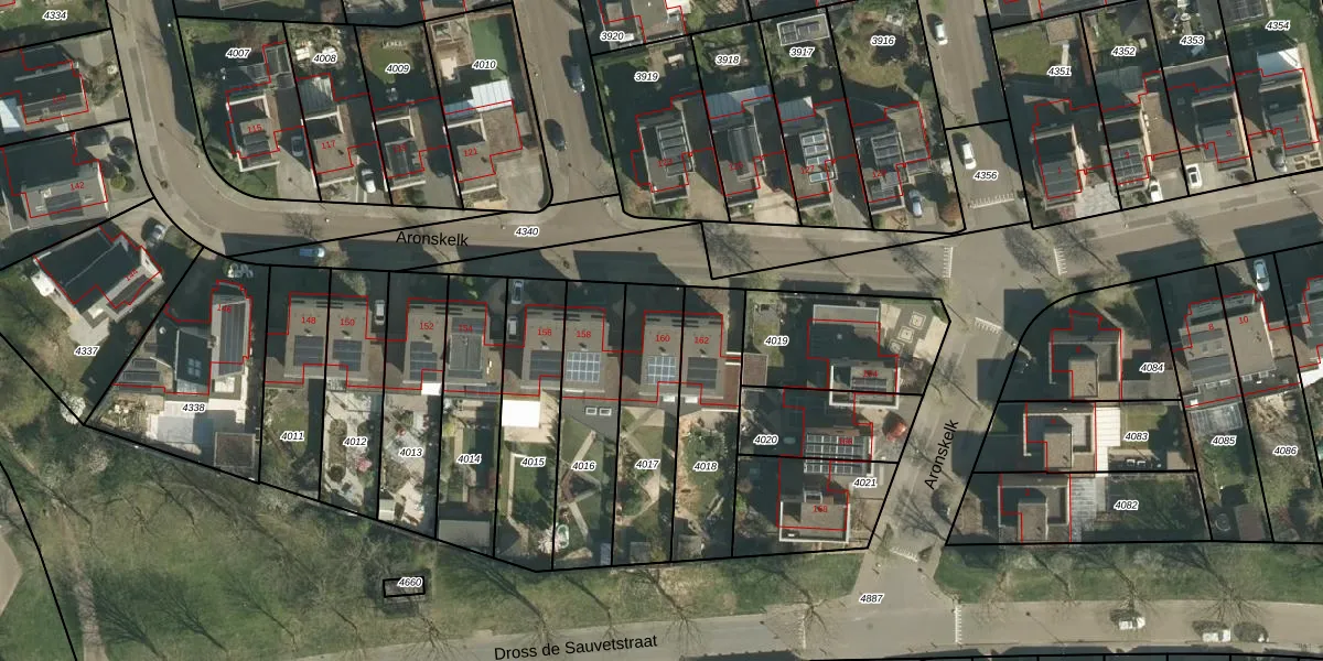 Aronskelk 160 is gelegen op kadastraal perceel ELO00A4017. Deze kadastrale aanduiding is uniek en wordt gebruikt door het Kadaster om eigendomsrechten en andere zakelijke rechten vast te leggen. Het perceel maakt onderdeel uit van de kadastrale gemeente Elsloo.