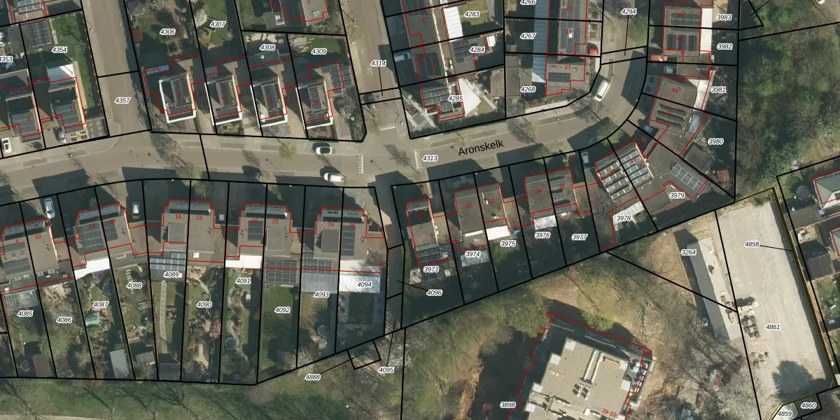 Het perceel waarop Aronskelk 28 staat heeft een oppervlakte van 396 m². Dit is een groot perceel. De perceeloppervlakte wordt geregistreerd door het Kadaster. Gedetailleerde informatie over de maten van dit perceel kunt u vinden in het rapport Kadastrale kaart met maatvoering van Aronskelk 28.