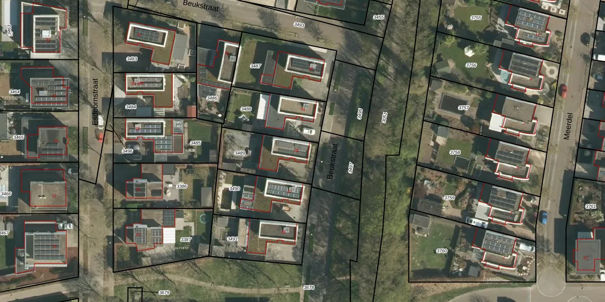 Gebruik de zoekbalk of klik op een perceel voor informatie over de adressen binnen dit perceel.