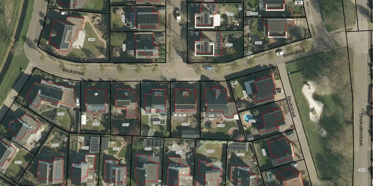 Beukstraat 42 is gelegen op kadastraal perceel ELO00C3329. Deze kadastrale aanduiding is uniek en wordt gebruikt door het Kadaster om eigendomsrechten en andere zakelijke rechten vast te leggen. Het perceel maakt onderdeel uit van de kadastrale gemeente Elsloo.