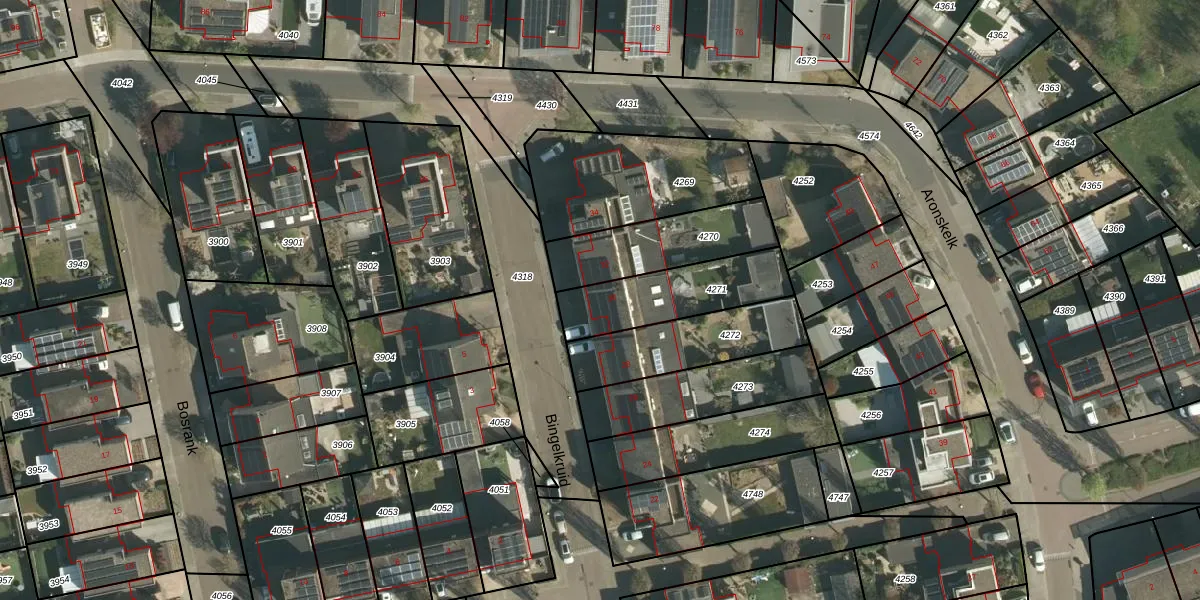 Het perceel waarop Bingelkruid 30 staat heeft een oppervlakte van 327 m². Dit is een groot perceel. De perceeloppervlakte wordt geregistreerd door het Kadaster. Gedetailleerde informatie over de maten van dit perceel kunt u vinden in het rapport Kadastrale kaart met maatvoering van Bingelkruid 30.