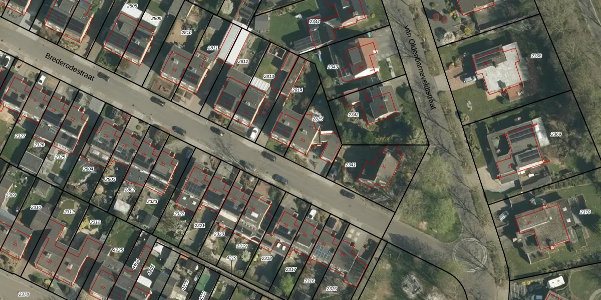 Brederodestraat 23 is gelegen op kadastraal perceel ELO00A2815. Deze kadastrale aanduiding is uniek en wordt gebruikt door het Kadaster om eigendomsrechten en andere zakelijke rechten vast te leggen. Het perceel maakt onderdeel uit van de kadastrale gemeente Elsloo.