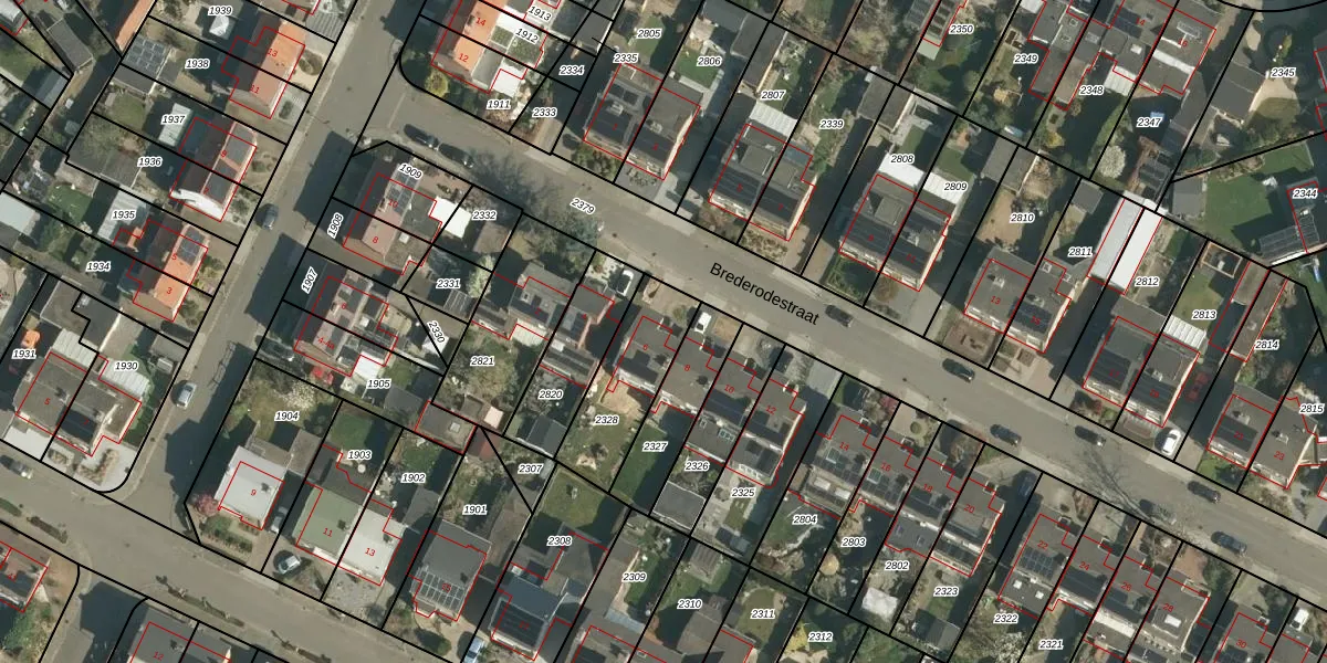 Het perceel waarop Brederodestraat 6 staat heeft een oppervlakte van 305 m². Dit is een groot perceel. De perceeloppervlakte wordt geregistreerd door het Kadaster. Gedetailleerde informatie over de maten van dit perceel kunt u vinden in het rapport Kadastrale kaart met maatvoering van Brederodestraat 6.