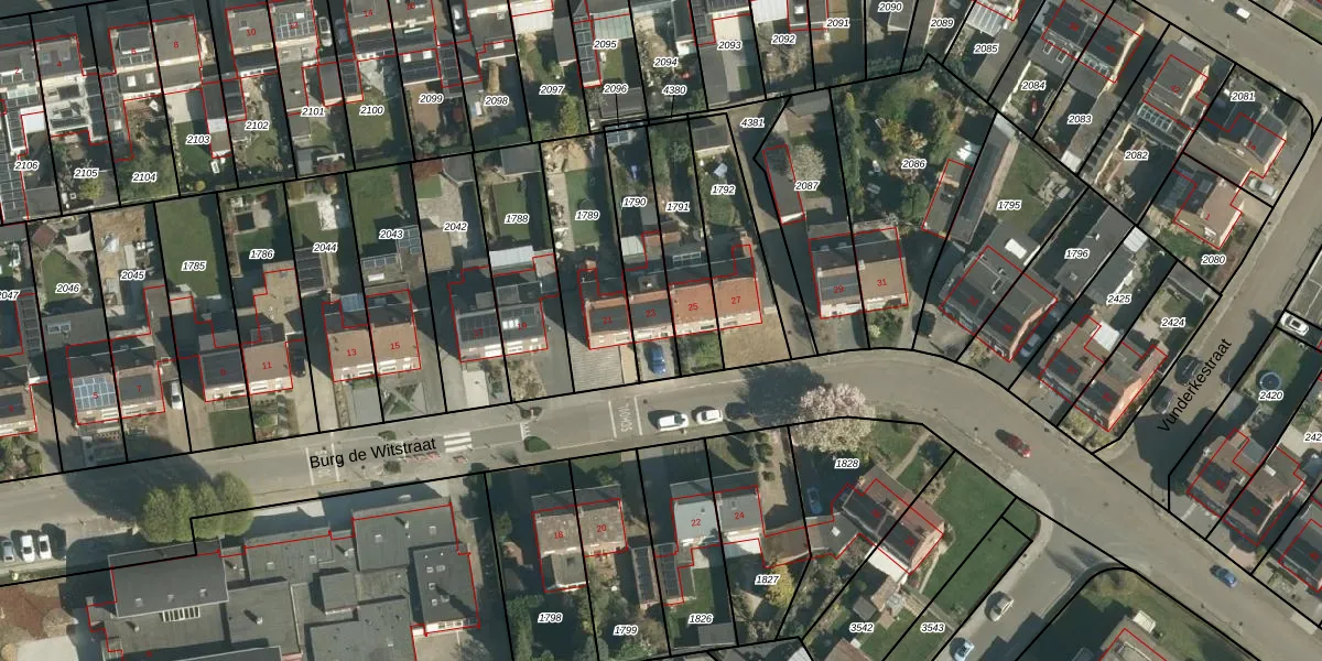 Het perceel waarop Burg de Witstraat 23 staat heeft een oppervlakte van 245 m². Dit is een middelgroot perceel. De perceeloppervlakte wordt geregistreerd door het Kadaster. Gedetailleerde informatie over de maten van dit perceel kunt u vinden in het rapport Kadastrale kaart met maatvoering van Burg de Witstraat 23.