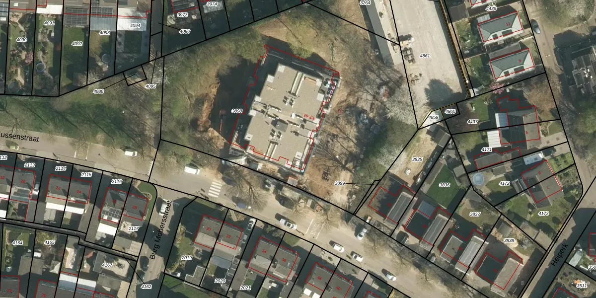 Het perceel waarop Burg Eussenstraat 31-a staat heeft een oppervlakte van 4074 m². Dit is een zeer groot perceel. De perceeloppervlakte wordt geregistreerd door het Kadaster. Gedetailleerde informatie over de maten van dit perceel kunt u vinden in het rapport Kadastrale kaart met maatvoering van Burg Eussenstraat 31-a.