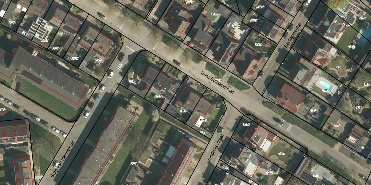 Burg Eussenstraat 54-a is gelegen op kadastraal perceel ELO00A2029. Deze kadastrale aanduiding is uniek en wordt gebruikt door het Kadaster om eigendomsrechten en andere zakelijke rechten vast te leggen. Het perceel maakt onderdeel uit van de kadastrale gemeente Elsloo.