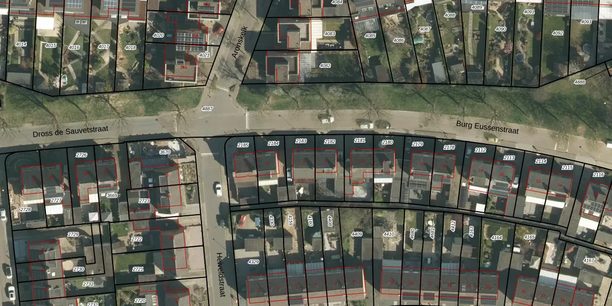 Burg Eussenstraat 6 is gelegen op kadastraal perceel ELO00A2183. Deze kadastrale aanduiding is uniek en wordt gebruikt door het Kadaster om eigendomsrechten en andere zakelijke rechten vast te leggen. Het perceel maakt onderdeel uit van de kadastrale gemeente Elsloo.