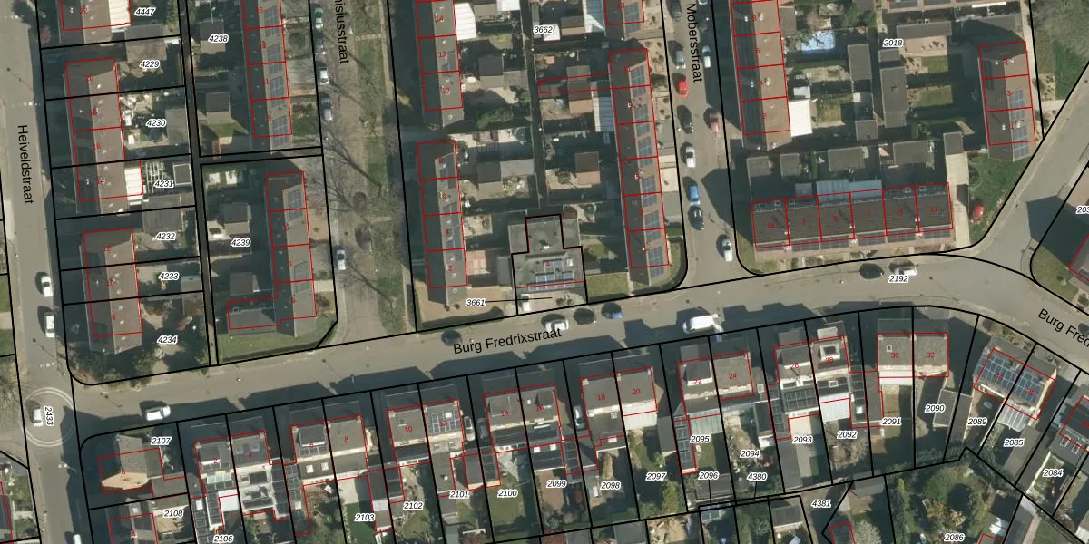 Het perceel waarop Burg Fredrixstraat 1 staat heeft een oppervlakte van 182 m². Dit is een middelgroot perceel. De perceeloppervlakte wordt geregistreerd door het Kadaster. Gedetailleerde informatie over de maten van dit perceel kunt u vinden in het rapport Kadastrale kaart met maatvoering van Burg Fredrixstraat 1.