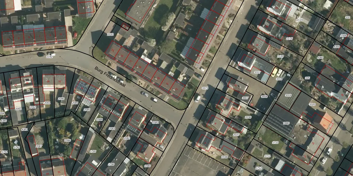 Het perceel waarop Burg Fredrixstraat 27 staat heeft een oppervlakte van 5685 m². Dit is een zeer groot perceel. De perceeloppervlakte wordt geregistreerd door het Kadaster. Gedetailleerde informatie over de maten van dit perceel kunt u vinden in het rapport Kadastrale kaart met maatvoering van Burg Fredrixstraat 27.