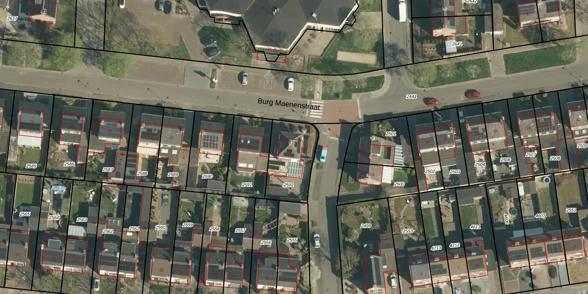 Het perceel waarop Burg Maenenstraat 28 staat heeft een oppervlakte van 410 m². Dit is een groot perceel. De perceeloppervlakte wordt geregistreerd door het Kadaster. Gedetailleerde informatie over de maten van dit perceel kunt u vinden in het rapport Kadastrale kaart met maatvoering van Burg Maenenstraat 28.