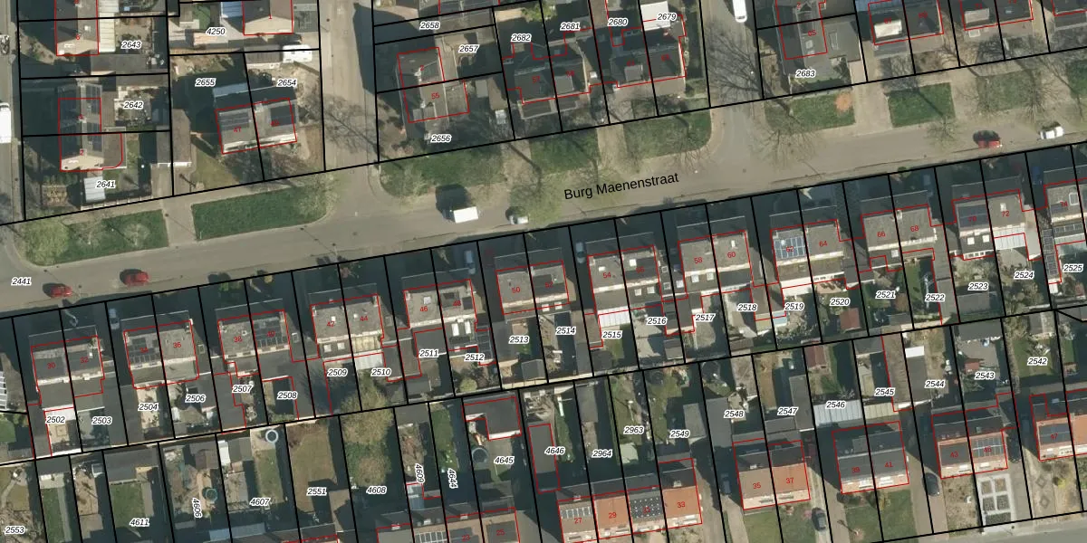 Burg Maenenstraat 52 is gelegen op kadastraal perceel ELO00A2514. Deze kadastrale aanduiding is uniek en wordt gebruikt door het Kadaster om eigendomsrechten en andere zakelijke rechten vast te leggen. Het perceel maakt onderdeel uit van de kadastrale gemeente Elsloo.