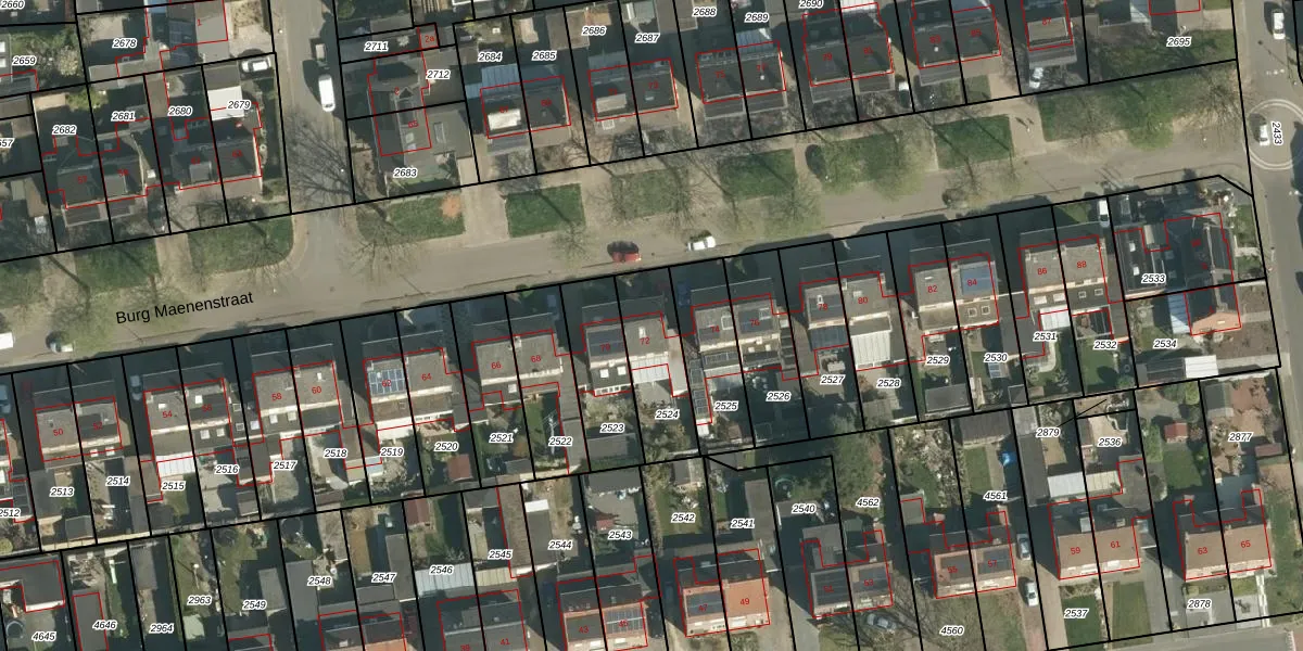 Burg Maenenstraat 72 is gelegen op kadastraal perceel ELO00A2524. Deze kadastrale aanduiding is uniek en wordt gebruikt door het Kadaster om eigendomsrechten en andere zakelijke rechten vast te leggen. Het perceel maakt onderdeel uit van de kadastrale gemeente Elsloo.