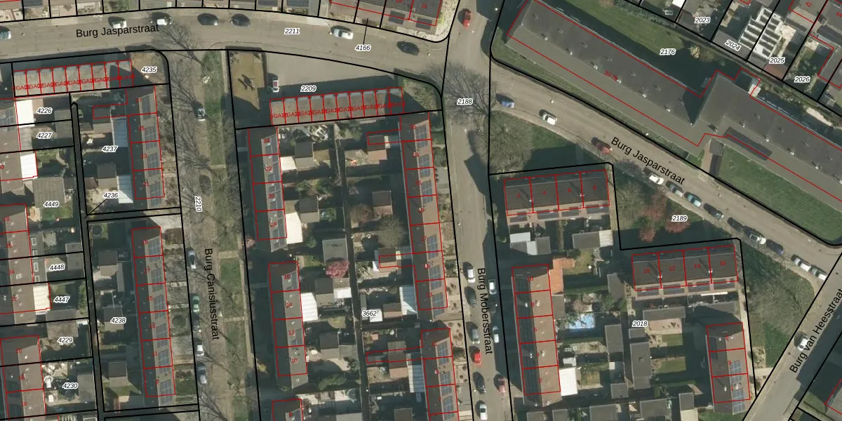 Het perceel waarop Burg Mobersstraat 19 staat heeft een oppervlakte van 4713 m². Dit is een zeer groot perceel. De perceeloppervlakte wordt geregistreerd door het Kadaster. Gedetailleerde informatie over de maten van dit perceel kunt u vinden in het rapport Kadastrale kaart met maatvoering van Burg Mobersstraat 19.